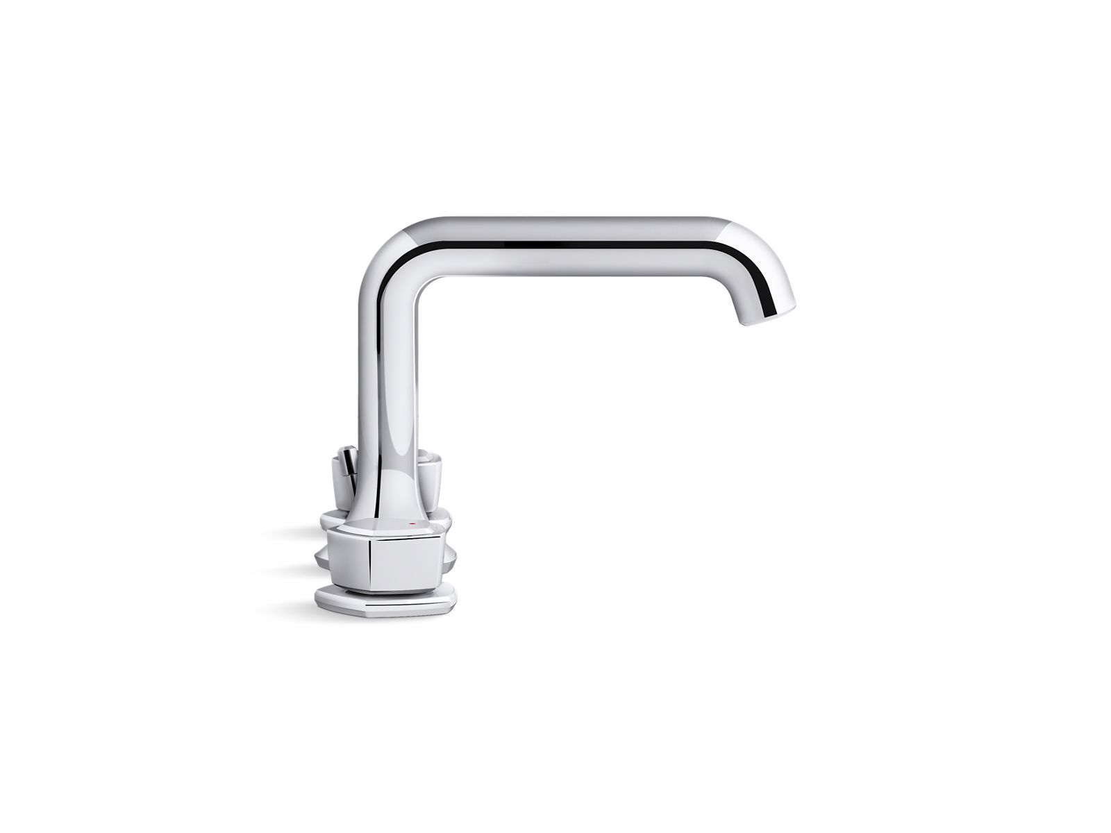 Unapologetically luxurious and truly unforgettable, Occasion bathroom faucets and accessories draw inspiration from 1960s Hollywood glamour and extravagance. Fashioned after the era’s sleek dress lines and bold car designs, the Occasion collection reflects graceful elegance, blending classic midcentury and modern design. Customize your bathroom with the collection’s distinctive pentagonal accents, faceted bases, flowing lines, and delicate edges. Sleek and statuesque, the Occasion widespread bathroom sink faucet with knob handles and Straight spout is as fashionable as it is functional.